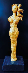 2022Vrouw met duveltje op haar schouder op stenen sokkel