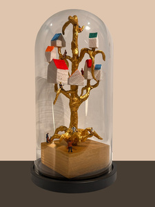 2024Leven onder een stolp, in bomen met daarin vogelachtig huisjes. Gedwongen door de woningnood.