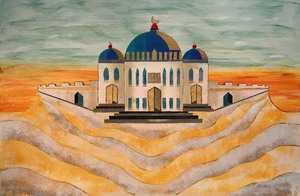 2022geschilderd met acryl op los linnen doek word d.m.v. een zoom aan de boven en onderkant opgehangen