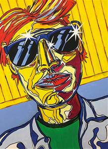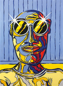 2021Het beeld, de lijnen zijn in kleur opgespoten met een injectienaald daarna overschilderd en toen weer opgeschuurd